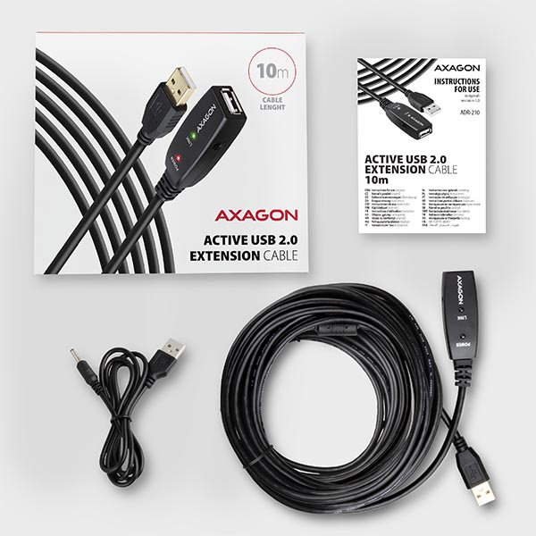 Celková dĺžka USB trasy pri kombinácii tejto 10m predlžovačky s ďalšími káblami systému aktívne USB kabeláže AXAGON až 50 metrov.