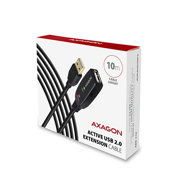 Aktívny predlžovací USB 2.0 kábel AXAGON ADR-210 dĺžky 10 metrov.
