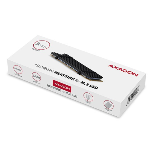 AXAGON CLR-M2L3, hliníkový pasívny chladič pre M.2 2280 SSD, výška 3 mm