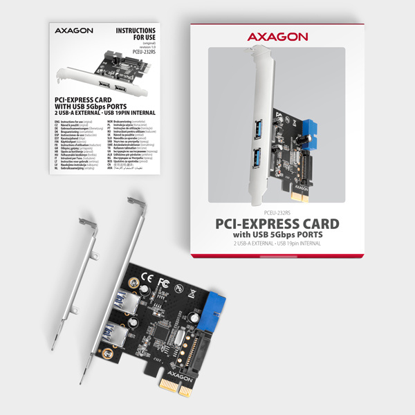 Karta AXAGON PCEU-232RS PCI-Express rozširuje stolný počítač o štyri porty USB 5Gbps. Karta je určená pre rýchle dátové prenosy rýchlosťou až 5 Gbps.