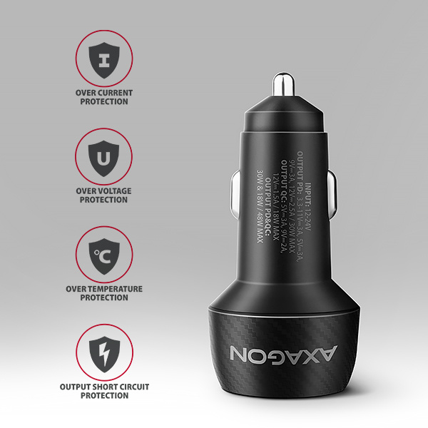 Univerzální nabíječka do auta AXAGON PWC-PQ48 umožňuje rychlé nabíjení až dvou mobilních zařízení současně pohodlně na cestách. Díky celkovému výkonu 48W dokáže nabíječka dobíjet telefon a tablety nejvyšší možnou rychlostí. Adaptér nabízí nejen standardní USB-A konektor, ale také oboustranný USB-C konektor.