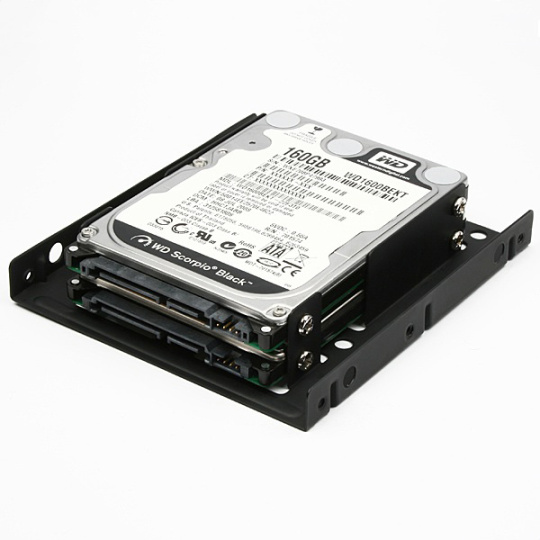 Kovový rám AXAGON RHD-225 umožňuje montáž dvoch 2.5" pevných diskov alebo diskov SSD do jedného 3.5" pozícia PC skrinky.
