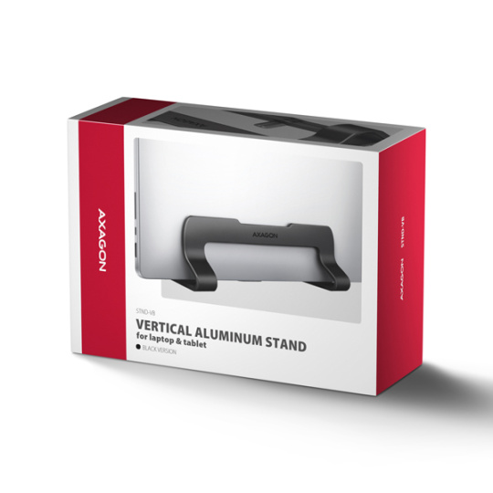 AXAGON STND-VB, vertikálny hliníkový stojan pre notebooky 10"-17.3, nastaviteľný rozostup, čierny