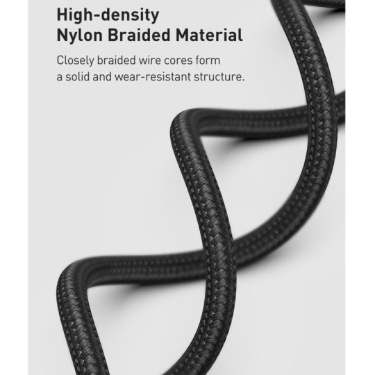 Kábel je vyrobený z nylonového opletenia odolného proti praskaniu a deformácii a zosilnené spoje a hliníkové zástrčky zabraňujú praskaniu a inému poškodeniu.