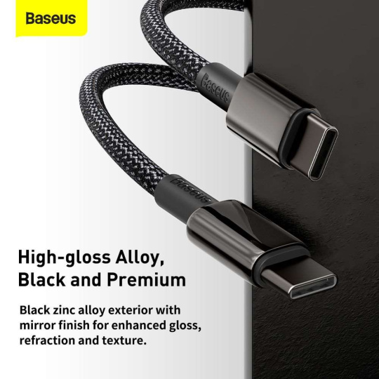 Baseus Tungsten Gold USB-C na USB-C Rýchlonabíjací / dátový kábel 100W 1m, čierny