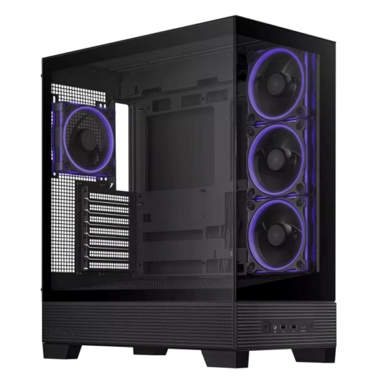 Skříň ASUS A31 PLUS ATX nabízí podporu základních desek se skrytými konektory, 360mm chladiče a 380mm grafické karty, černé nebo bílé barevné provedení, čtyři předinstalované ventilátory ARGB a čistý management kabelů.