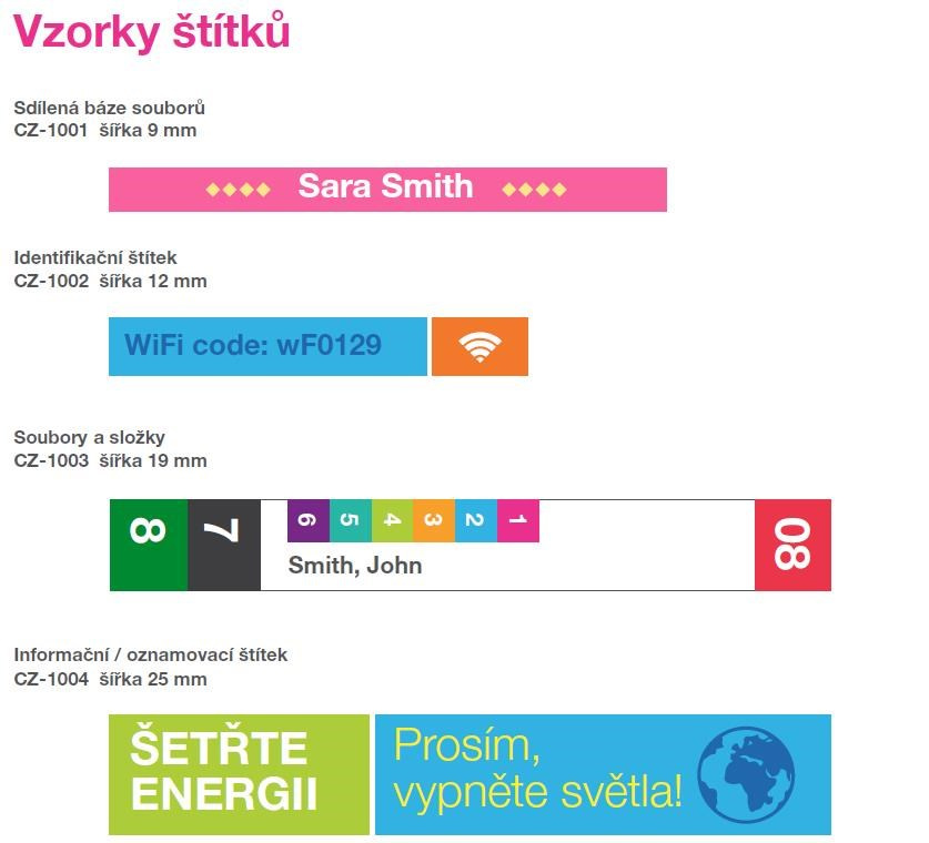 Typ média / Kontinuálna plnofarebná rolka / Dostupné šírky pásky / 9, 12, 19, 25 a 50 mm