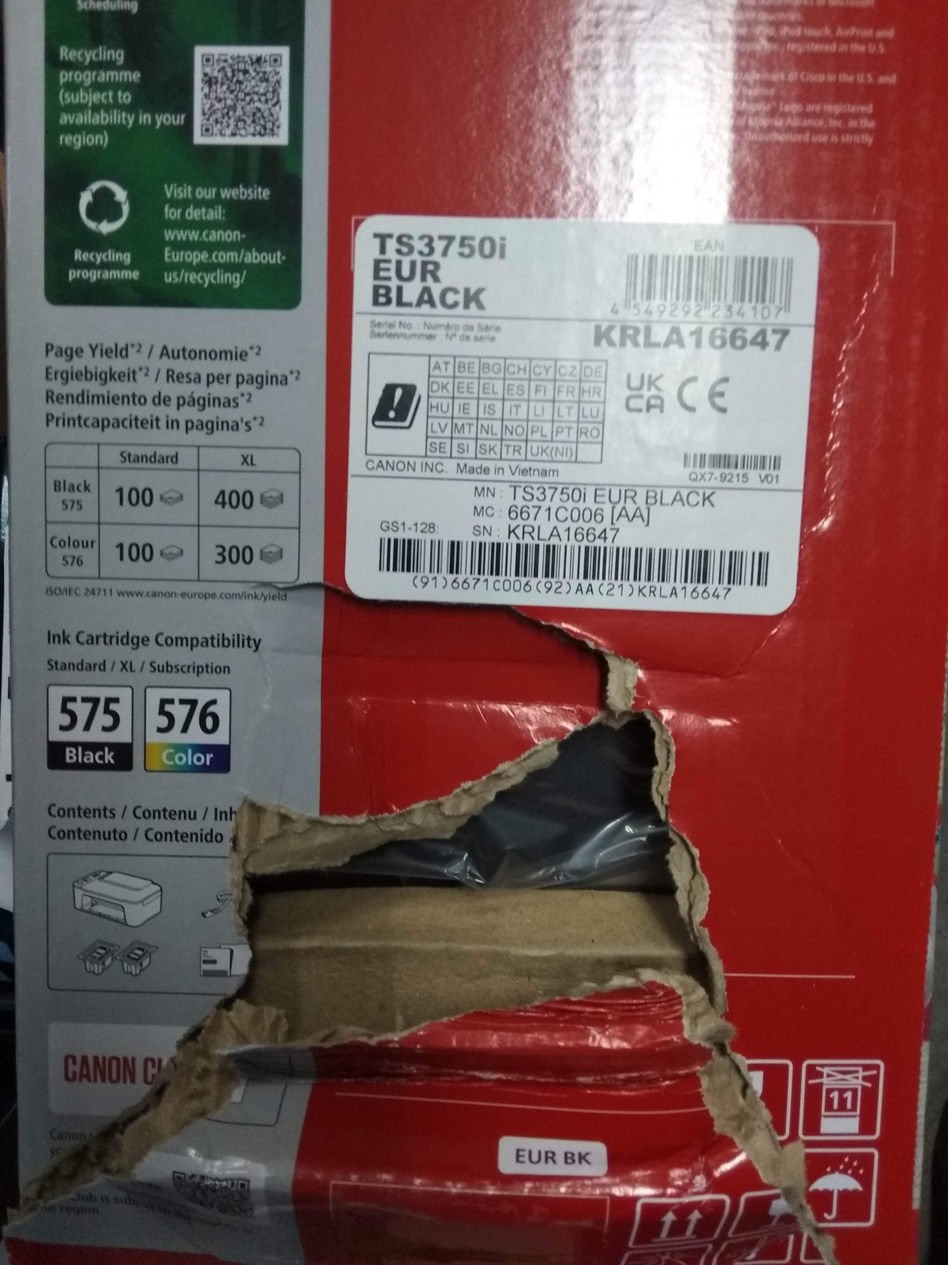 BAZAR -Canon PIXMA Tiskárna TS3750i black - barevná, MF (tisk, kopírka, sken, cloud), USB, Wi-Fi ( poškodený obal )
