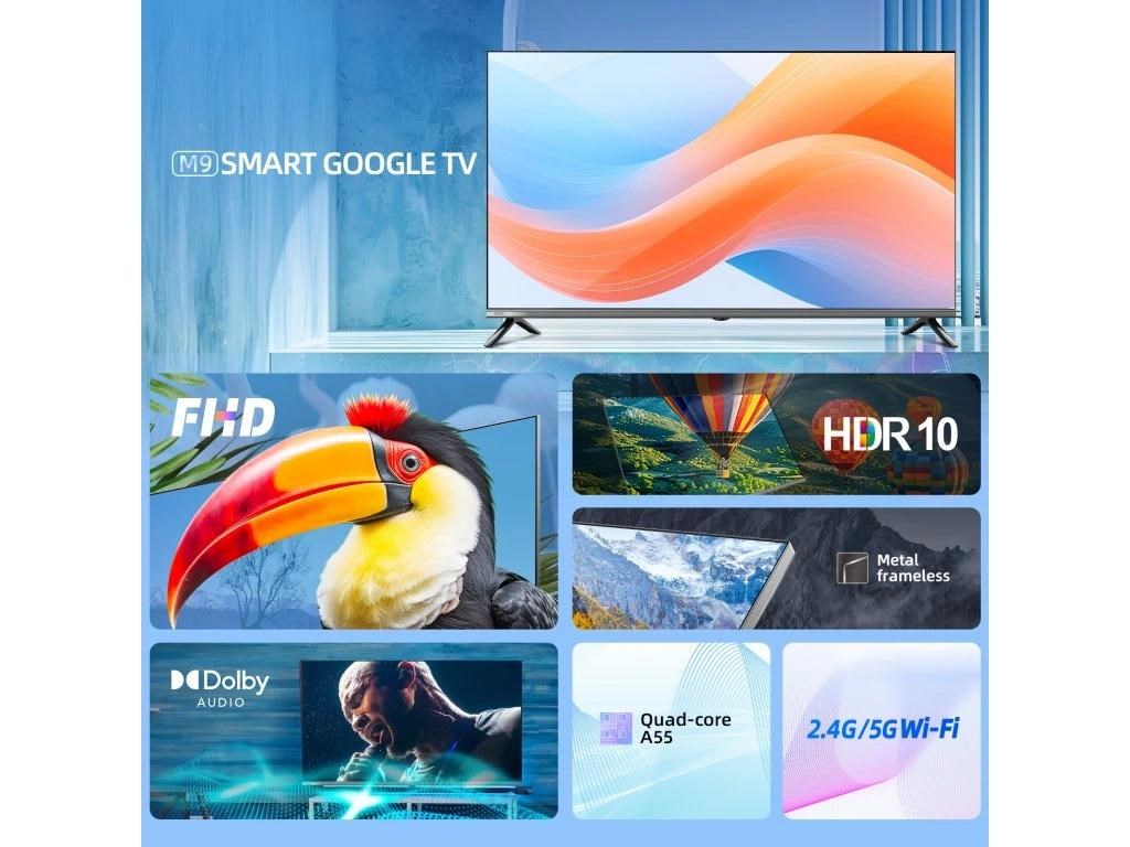 CHiQ 40“ L40M9E, metalická bezrámečková Smart Google TV s HDR10, HLG, obrazovkou s Full HD s rozlišením 1920 x 1080 pixelů, Dolby Audio a vylepšeným zvukem dbx-tv.