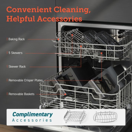 Všetko príslušenstvo je vhodné aj do umývačky riadu, teda šetrí čas, energiu aj životné prostredie.