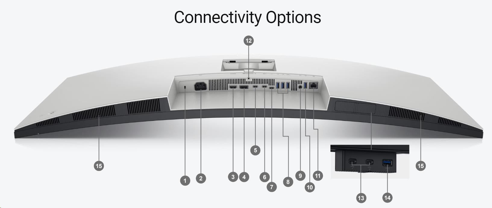 • 1 x USB Type-C® upstream port (iba dáta) (SuperSpeed USB 10 Gbps, USB 3.2 Gen2)