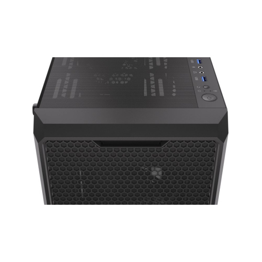 Šasi formátu Middle Tower s priehľadnou bočnicou z tvrdeného skla ponúka dve 2,5" pozície pre SSD disky a dve 3,5" pozície pre pevné disky. Na vrchnej časti sa nachádza dva USB 3.0 porty, výstup na slúchadlá a vstup na mikrofón. Vybavené je štyrmi 120 mm ventilátormi, ktoré spolu s perforovaným čelným panelom zabezpečujú dostatočný prúdenie vzduchu. Vo skrini je dostatok priestoru pre chladič CPU do výšky až 162 mm a grafickú kartu s dĺžkou až 370 mm. Dodáva sa bez zdroja. Súčasťou je aj sada prachových filtrov.