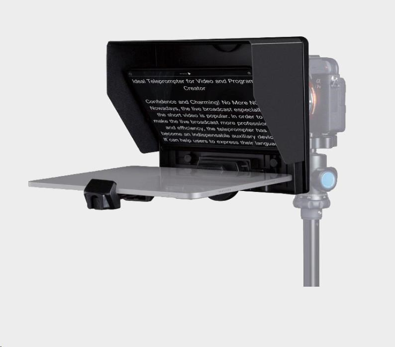 Feelworld TP10 je prenosné skladacie čítacie zariadenie, ktoré je vybavené 10-palcovým sklom na rozdeľovanie lúčov, ktoré vám umožní jasne čítať posúvajúci sa text pri pohľade priamo do fotoaparátu. Zariadenie je ideálne pre vlogy, živé vysielanie, online návody, nahrávanie videa, rozhovory, videoštúdio, reportáže a prezentácie. Scenár si nemusíte pamätať! Text je možné zobraziť na smartfóne alebo tablete, zatiaľ čo na snímanie používate digitálnu zrkadlovku alebo smartfón. Medzi hlavné výhody patrí podpora širokouhlého objektívu, aplikácia pre Android/iOS, diaľkové ovládanie Bluetooth a jednoduché nastavenie a ovládanie zariadenia, vďaka čomu je produkcia videa efektívnejšia.