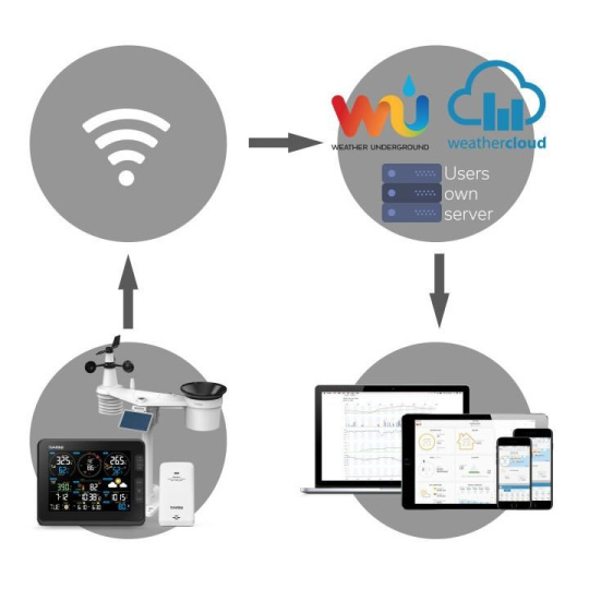 ty pomocí místní Wi-Fi sítě v reálném čase nahrává na zvolený server/servery Weather Underground (https://www.wunderground.com) a Weathercloud (https://weathercloud.net/en),