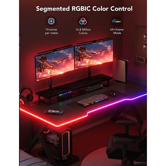 Tí, ktorí majú radi viacero farieb, si zamilujú funkciu segmentového ovládania farieb, ktorú umožňuje technológia RGBIC. Prispôsobte si farbu každej sekcie pásu podľa seba a vytvorte tak jedinečné osvetlenie, ktoré bude presne podľa vašich predstáv, vkusu a aktuálnej nálady.
