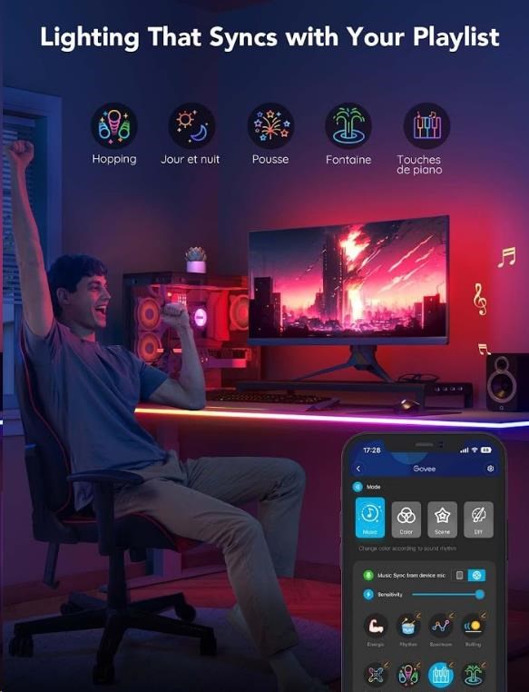 Svetelný pás sa plynule synchronizuje s vašou hudbou podľa rytmu pri filmoch, hraní hier a počúvaní hudby. Celkovo je na výber až z 11 hudobných režimov.