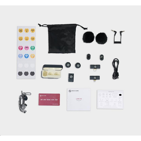 LARK M2 je dodávaný so sadou užitočného príslušenstva vrátane veterných krytov pre nahrávanie vonku, káblových konektorov pre jednoduché pripojenie a špeciálneho náhrdelníka pre každý TX. S týmto príslušenstvom budete mať všetko, čo potrebujete k nastaveniu zariadenia LARK M2 a využívaniu jeho funkcií.