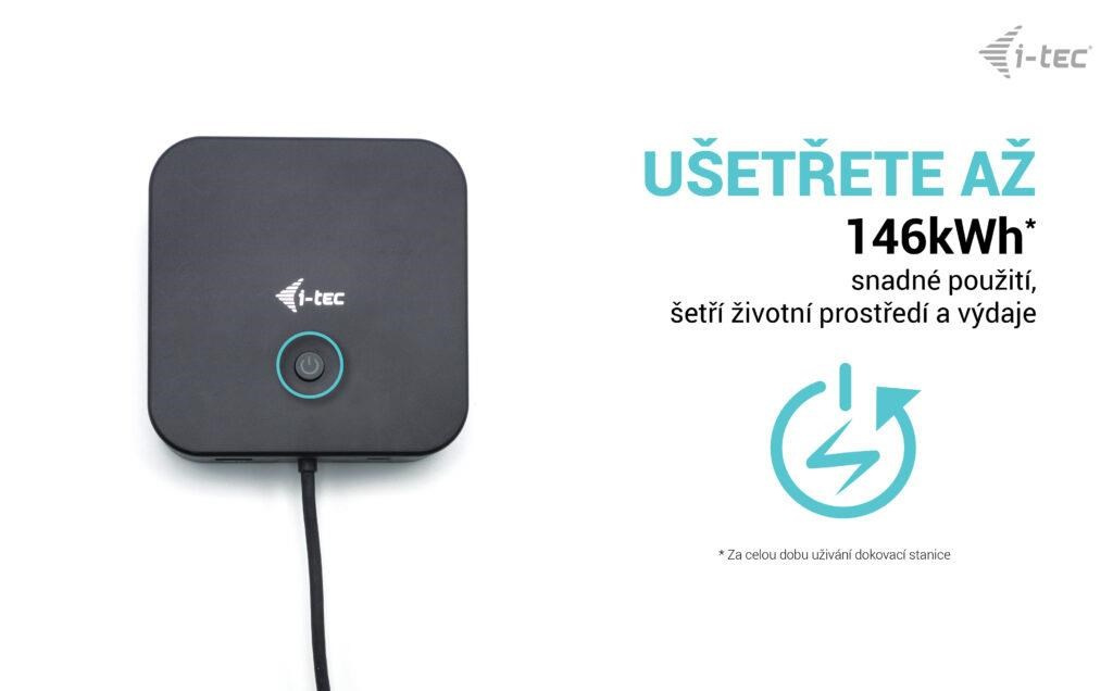 Úsporný vypínač na zníženie spotreby energie, keď je dokovacia stanica nepoužívaná.