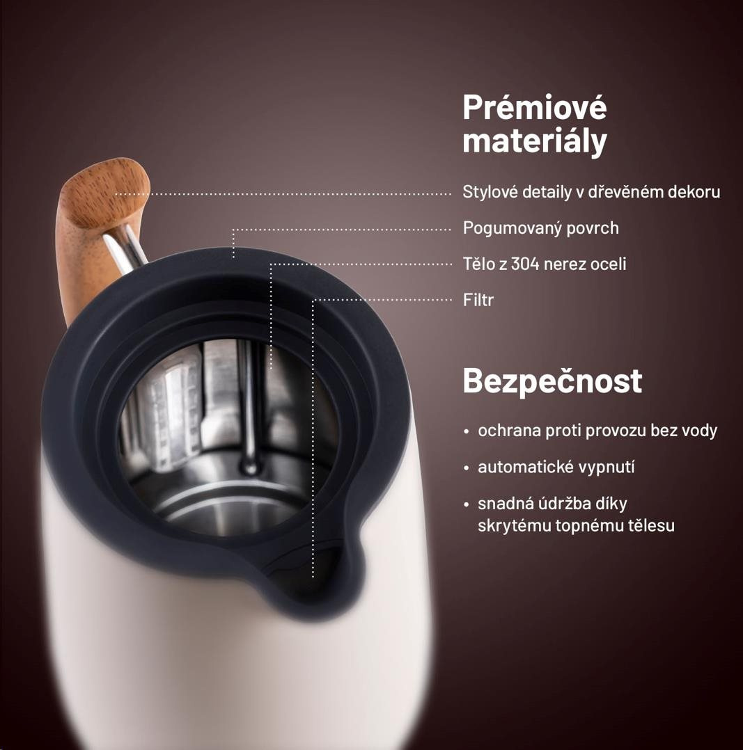 Kanvica je vybavená poistkou proti prehriatiu aj vareniu bez vody.