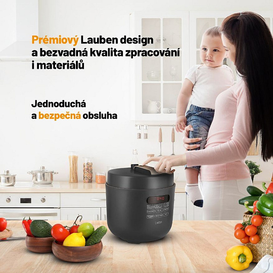 Keď mu zvýšite tlak, ušetríte časTlakové hrnce bývali vždy vítanými, ale tiež obávanými spoločníkmi v domácnosti. Energeticky úsporný viacúčelový elektrický tlakový hrniec Lauben Electric Pressure Cooker 5000AT má všetky výhody tzv. papiňáka a ešte niečo naviac a v modernom a bezpečnom šate. Čas aj peniaze šetrí kratšia doba prípravy vďaka tlaku vo vnútri a navyše sa takto zachová v jedle viac živín. Aj keď nie ste kuchársky majster, obľúbite si fakt, že do hrnca stačí dať suroviny, zapnúť ho a on sa o všetko postará. Hrniec disponuje 9 prednastavenými programami a 3 úrovňami požadovanej štruktúry mäsa. Čas prípravy nastavíte aj manuálne. 5l objem stačí pre celú rodinu, údržba je jednoduchá, bezpečnosť zaisťuje One Touch ventil pre vypustenie tlaku. Jedlo udrží teplé funkcia Keep Warm, lepšie plánovanie umožní odložený štart. Balenie obsahuje tiež kuchárku.