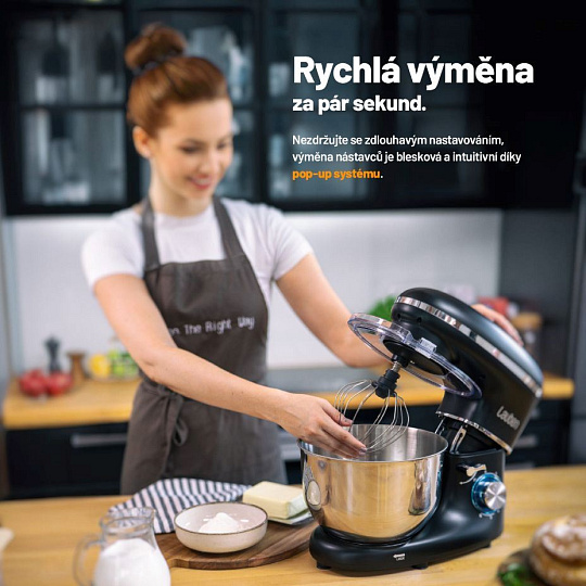 Šéf kuchyne, ktorý vám uľahčí prácuVarenie a pečenie sa stane ešte väčšou zábavou, s viacúčelovým kuchynským robotom Lauben Kitchen Machine 550BC s výkonom 1400 W všetko zvládnete ľahko a rýchlo. Netreba sa báť ani prípravy tuhšieho cesta, celokovové prevody si s vysokou záťažou poradia. Misa s objemom 5,5 l z nerezovej ocele pojme skutočne veľa a veko bráni úniku obsahu pri spracovaní. Suroviny je možné počas prevádzky pridávať cez plniacu otvor vo veku. Pri všetkom, čo dokáže, je robot menších rozmerov a nezaberie tak na linke príliš miesta. Svojim dizajnom ju však bude aj zdobiť. Prístroj pohodlne ovládate jednou rukou vďaka One Touch systému, manipuláciu uľahčuje tiež Pop-up systém slúžiaci k výmene nadstavcov. Robot disponuje hneď niekoľkými nadstavcami, pre miešanie, šľahanie či miesenie a ku každému z nich nájdete v balení chutný recept na inšpiráciu.