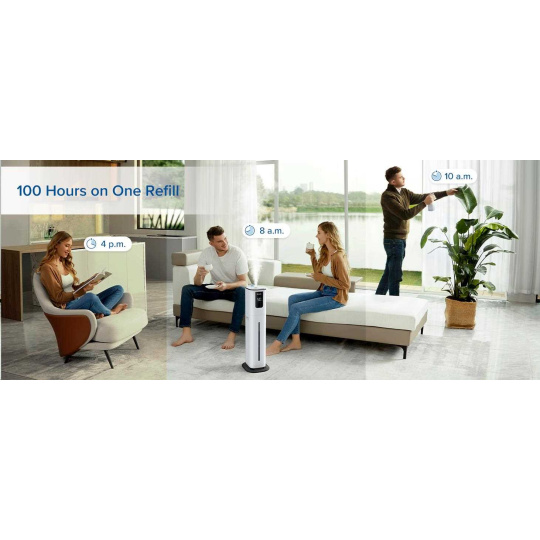 Levoit OasisMist Smart disponuje 10l nádobou na vodu a s výkonom 350ml/h hravo pokryje miestnosti do veľkosti až 55m2. Maximálna doba prevádzky je až 100 hodín v závislosti od použitého programu zvlhčovača. Keď voda dôjde, zariadenie sa samo automaticky vypne, aby nedošlo k poškodeniu a informuje vás aj cez aplikáciu v chytrom zariadení.