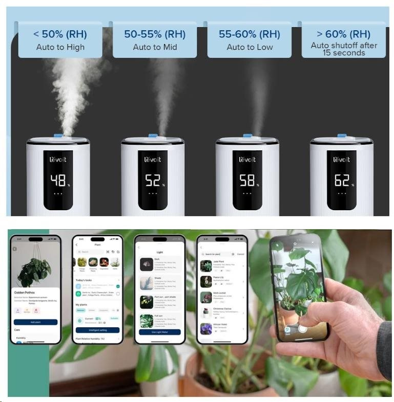 Rovnako ako ľudia, aj rastliny potrebujú správnu vlhkosť, aby sa im dobre darilo. So zvlhčovačom Levoit OasisMist Smart budú vaše kvety v dobrej starostlivosti a skvelej kondícii aj počas suchých období. Vďaka automatickému programu a možnosti nastavenia časových harmonogramov poskytnete vašim rastlinám potrebnú starostlivosť.