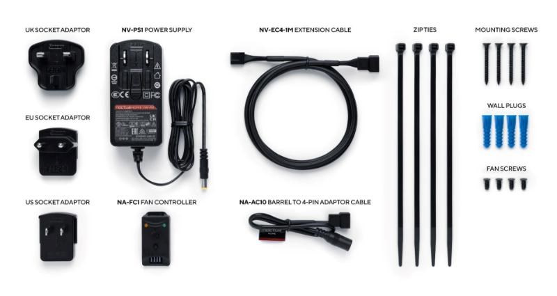 NV-FS1 je vysoko univerzálna, prémiová súprava viacúčelových ventilátorov, ktorú možno použiť na širokú škálu ventilačných úloh, ako sú aplikácie stolových a izbových ventilátorov alebo chladenie zariadení. V kombinácii s oceňovaným ventilátorom NF-A12x25 PWM so zosilňovačom prúdenia vzduchu NV-AA1 poskytuje výnimočne tichý chladiaci výkon a výkonné, sústredené prúdenie vzduchu, ktoré je možné podľa potreby upraviť pomocou priloženého regulátora rýchlosti NA-FC1.
