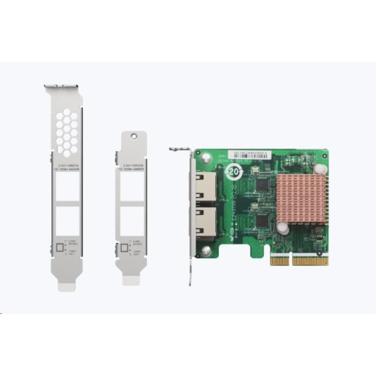 QNAP ponúka firmám a domácim používateľom rôzne nákladovo efektívne sieťové rozširujúce karty, aby ľahko zvýšili šírku pásma vo svojich QNAP NAS, serveroch či počítačoch tak, aby vyhovovali vysokorýchlostnému prenášaniu dát a aplikáciám náročným na šírku pásma. Rozširujúca sieťová karta 2,5 GbE poskytuje rýchlosti až 2,5 Gb/s. Aj so súčasnými káblami môžete ľahko vylepšiť svoju sieťovú infraštruktúru doma či v kancelárii.
