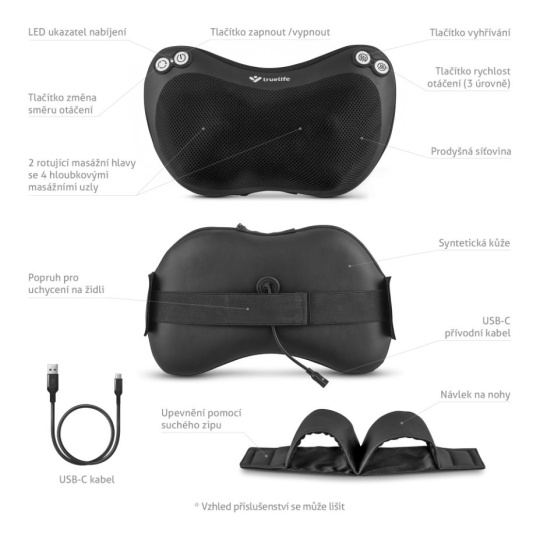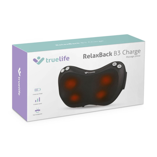 TrueLife RelaxBack B3 Charge – Masážny vankúš s dobíjacou batériou
