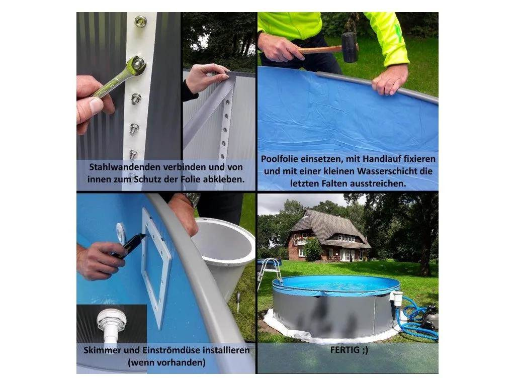 Nadzemné bazény Planet Pool s oceľovou stenou sú určené na celoročné používanie. Odpadá tak potreba bazén demontovať na jeseň a znova inštalovať na jar ako u sezónnych bazénov s nafukovacím límcom či rámovou konštrukciou. Vďaka žiarovo pozinkovanej a nátierkou ošetrenej oceľovej stene a mrazuvzdornej fólii je bazén pripravený na všetky rozmary prírody. Tento bazén je veľmi stabilný, pevný s dlhodobou životnosťou. Moderná ANTRACITOVÁ nátierka steny bazénu + PIESKOVÁ PVC závesná fólia. Bazén je vhodný na inštaláciu na rovnom podklade s dostatočnou vzdialenosťou od potenciálneho spadu nečistôt zo stromov a strechy. UV stabilizácia PVC fólie zabezpečuje jej farebnú stálosť a životnosť. Tento bazén predstavuje osvedčenú koncepciu bazéna a pozitívnu historickú skúsenosť. Bazén sa inštaluje pomocou spodných a horných líšt, do ktorých sa zasúva oceľová stena. Oba kraje steny sa prepoja pomocou vnútorných a vonkajších líšt a skrutiek. Mrazuvzdorná fólia sa pomocou zalomenia k hornej časti oceľovej steny zavestí a tvaruje do bazéna podľa vizuálnych požiadaviek. Fólia je flexibilná a na mieru vyrobená pre tento typ bazéna (nie je potrebná žiadna úprava). Pre montáž krok za krokom sledujte pokyny v montážnom návode. Parametre: Tvar bazéna: guľatý tvar Rozmery bazéna: 350 x 90 cm Oceľová stena: 0,3 mm UV stabilizovaná PVC fólia, hrúbka 0,2 mm, farba PIESKOVÁ Farba bazéna: ANTRACITOVÁ Dierovanie pre štandardný vestavný skimmer a spätnú trysku dostupné Horná a podlahová lišta z plastu Bazén zodpovedá európskej norme pre bazény EN 16562-2