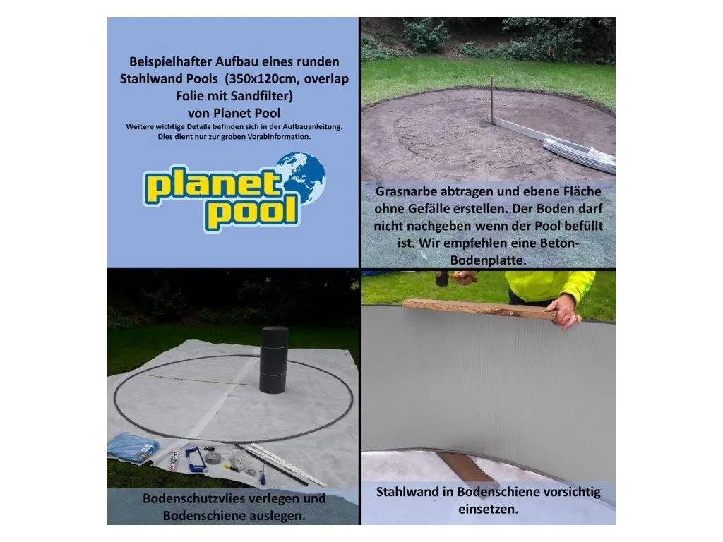 Bazén sa inštaluje pomocou spodných a horných líšt, do ktorých sa vsádza oceľová stena. Oba konce steny sa prepojí pomocou vnútorných a vonkajších líšt a skrutiek. Mrazuvzdorná fólia sa pomocou zalomenia na hornú časť oceľovej steny zaveste a vytvaruje do bazénu podľa vizuálnych požiadaviek. Fólia je flexibilná a na mieru vyrobená pre tento typ bazénu (nie je potrebná žiadna úprava). Pre montáž krok za krokom sledujte pokyny v montážnom návode.