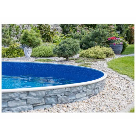 Bazénová fólia Waves pre bazény s plechovou stenou o rozmere 7,3 m x 3,7 m a hĺbke až 1,2 m. Fólia je vhodná ako pre nové bazény, tak aj na výmenu v už postavených bazénoch.