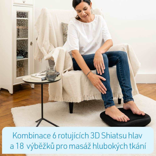 • Exkluzívna kombinácia 6 rotačných 3D hlavíc a 18 masážnych výstupkov zabezpečuje príjemnú Shiatsu hlbokú masáž