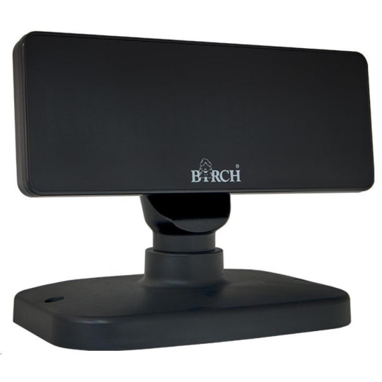 Birch DSP-V9 je vlastný alfanumerický VFD displej pre pokladnice, pošty a iné pulty za bezkonkurenčnú cenu. Zobrazuje 40 znakov v dvoch riadkoch veľkým, vysoko svietivým písmom. Ovládanie prebieha cez rozhranie USB alebo RS232 pomocou štandardného príkazového jazyka podľa vášho výberu (LD220, DSP800, UTC/S, ESC/POS, AEDEX, CD5220 a iné). Jeho hlavu možno horizontálne otáčať až do uhla 355°.