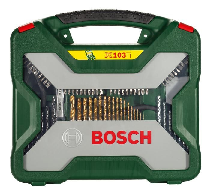 Obsah 18 vrtákov do kovu, typ HSS s povlakom TiN, O 1–10 mm 7 spirálových vrtákov do muriva, O 3–8 mm 7 vrtákov do dreva, O 3–10 mm 3 ploché frézovacie vrtáky s povlakom TiN, O 16/22/32 mm 4 nástavce na kontrolu hĺbky, O 3/5/8/10 mm 40 skrutkovacích nástavcov, d = 25 mm PH 0/0/1/1/2/2/2/3/3/3 PZ 0/0/1/1/2/2/2/3/3/3 S 4/4/6/6/7/7; HEX 3/4/5/6 T 10/10/15/15/20/20/25/25/30/40 8 maticových nástavcov, O 5/6/7/8/9/10/11/13 mm 4 derovačky typu HCS, O 32/38/45/54 mm 1 mierka priemerov, 1 záhlubník 1 meter na meranie dĺžky, 1 vodováha 1 šesťhranový kľúč 1 univerzálny magnetický držák 1 adaptér na maticové nástavce 1 adaptér na derovky 1 kladivo, 1 francúzsky kľúč 1 úzke ploché kliešte 1 kombinované kliešte