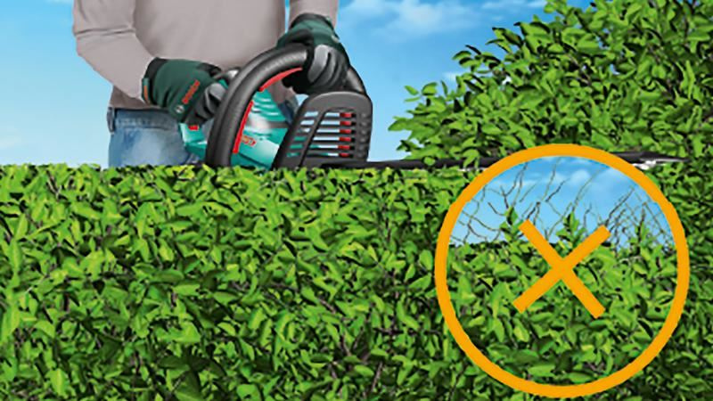 Reže rôzne typy stredne veľkých živých plotov s vetvami až do hrúbky 20 mm