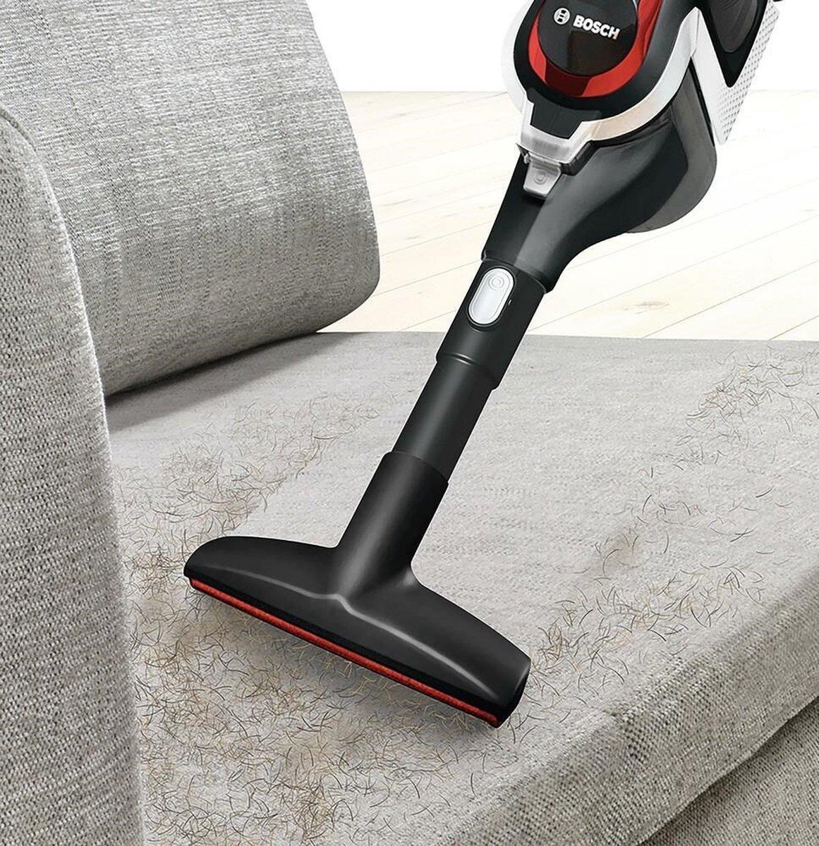 Tyčový vysávač Bosch BSS81POW1 je kompaktný akumulátorový tyčový vysávač Bosch. Tento tyčový vysávač Bosch BSS81POW1 má integrovaný vysávač drobností. Vďaka tomu sa dostane aj do ťažko prístupných miest. Pri úplnej batérii a v najnižšej polohe má tento tyčový vysávač Bosch BSS81POW1 dobu používania 30 minút. Je vysávač prázdny? Po 4 hodinách bude opäť plne nabitý. Tento tyčový vysávač má objem nádoby na prach 0,3 l a je dodávaný s kartáčom na nábytok 2 v 1 a hubicou na čalúnenie. Ako ďalšie extra príslušenstvo je tento tyčový vysávač dodávaný s dlhým flexibilným štetínovým nástavcom. Môžete tak upratovať od podlahy až po strop a v aute.