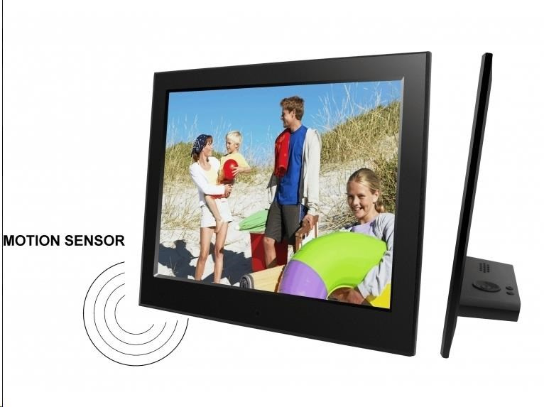 Digitálny fotorámik s uhlopriečkou 8", ultratenký 6,5 mm s opierkou, vysoké rozlíšenie 1280x800px, 16:10, Motion Senzor pohybu, prezeranie obrázkov vo formáte JPEG, posluch hudby MP3/WMA a prehrávanie videa Full HD MPEG1/2/4, multislot SD/MS a USB2 flash max 32GB, Audio out, Auto Start/ON/OFF, funkcie: SlideShow (prezentácia), náhľady, zoom a otáčanie obrázkov, budík, hodiny, kalendár. Rozmer: 220x176x23 mm, hmotnosť 440 g. Súčasťou dodávky sieťový zdroj AC/DC 5V/1,5A, diaľkové ovládanie.