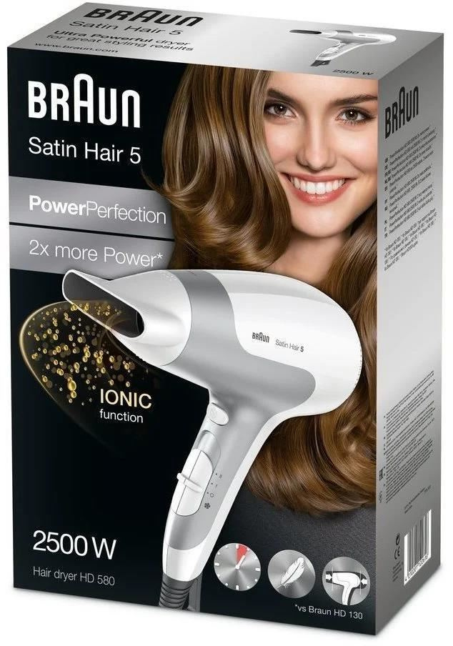 Braun vysúšač vlasov Satin Hair 5 HD580 je najvýkonnejší vysúšač z radu PowerPerfection a rýchly výsledok bez námahy. S výkonom 2500 wattov je vysúšač vlasov Satin Hair 5 HD580 ultra silným nástrojom pre každodenné rýchle vysúšanie vlasov. Kombinuje optimálnu teplotu a rýchlosť prúdenia vzduchu. Silný neznamená ťažký, tento kompaktný a ergonomický vysúšač umožňuje manipuláciu bez námahy a s ľahkosťou.