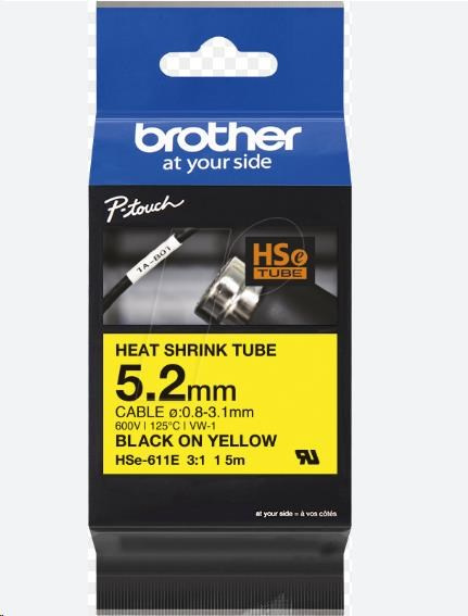 BROTHER smršťovací bužírka - HSE-611E žlutá pro E300VP H300 H500 E550 P700 P750 D800 P900 P950 - 5,2mm / o 0,8-3,1 / 3:1