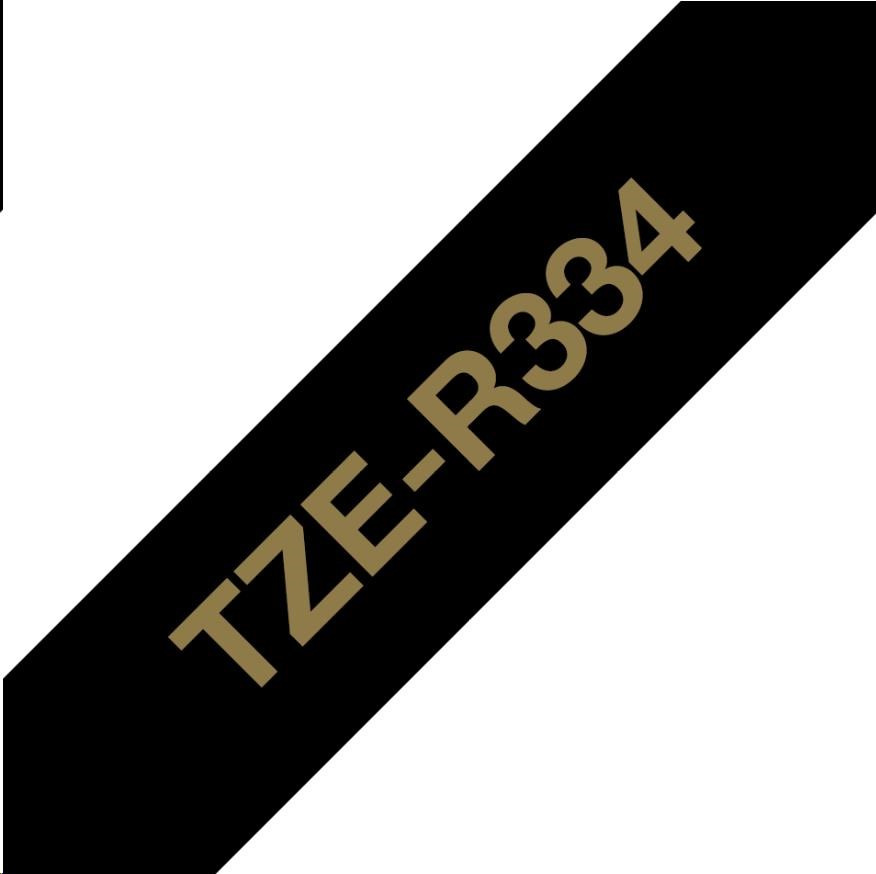BROTHER TZE-R334 - 12 mm široká kazeta s TZ páskou, 4 m TEXTILNÁ páska - na výrobu darčekov - NEŠPECKOVATÁ - ČIERNA PÁSKA, ZLATÝ POTISK