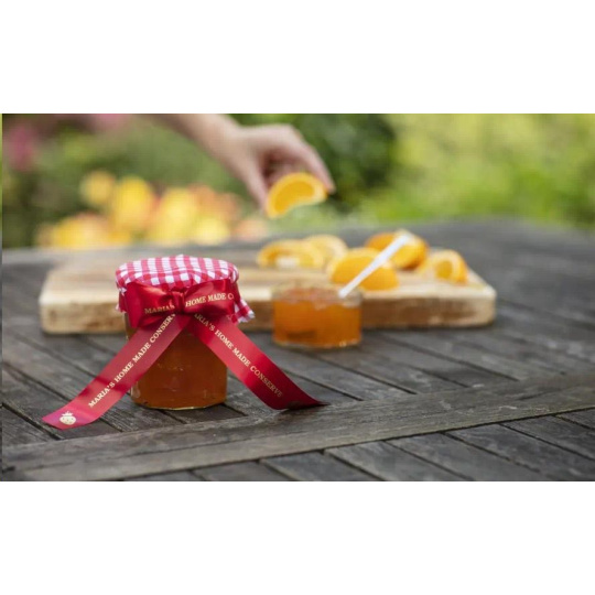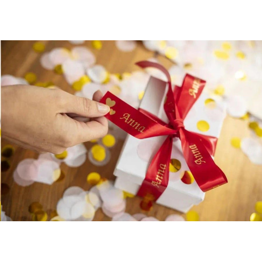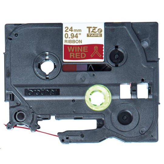 BROTHER TZE-RW54 - 24 mm široká kazeta s TZ páskou, 4 m TEXTILNÁ páska - na výrobu darčekov - NEŠTÍRIVÁ - ČERVENÁ PÁSKA, ZLATÝ POTISK