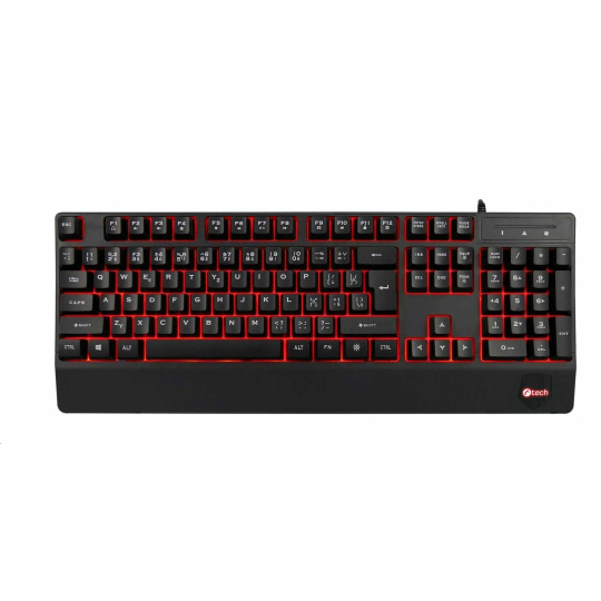 C-TECH Klávesnice KB-104BK, USB, 3 barvy podsvícení, černá, CZ/SK