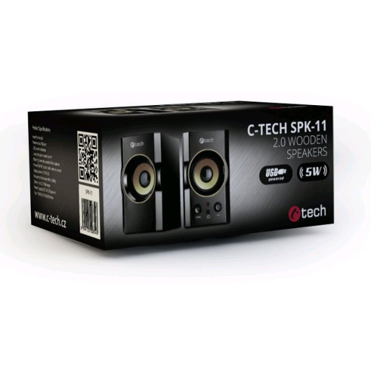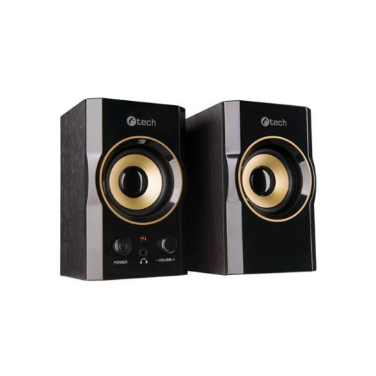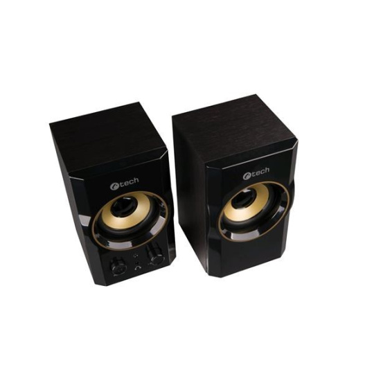 C-TECH repro SPK-11, 2.0, drevený, čierno-zlatý, USB