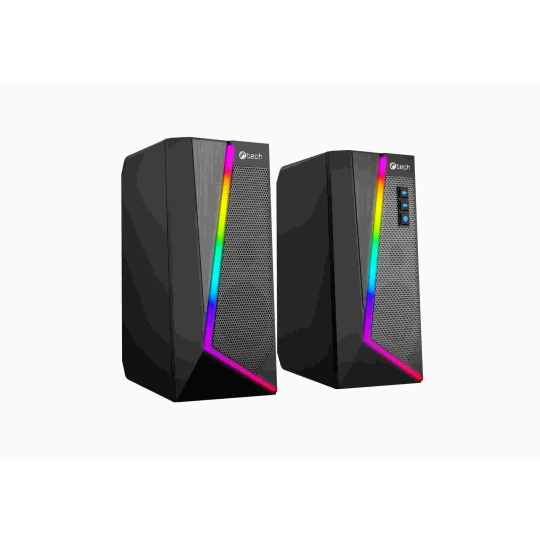 Stolové reproduktory C-tech SPK-17 s elegantným dizajnom a decentným RGB osvetlením sa stanú štýlovým doplnkom každého pracovného stola. Vďaka 40mm meničom s širokým frekvenčným rozsahom doprajú vašim uším veľmi kvalitnú reprodukciu. RGB osvetlenie disponuje 6 rôznymi svetelnými režimami, ktoré vám zaručia originálne vizuálne zážitky. Voľba režimu je veľmi jednoduchá a to dotykom na hornú plochu riadiaceho reproduktora. Reproduktory pripojíte k počítaču pomocou 3,5mm audio kábla a nemusíte si robiť starosti ani s prídavným napájaním, pretože reproduktory C-tech SPK-17 sú napájané priamo z USB vášho počítača a tak sa vám automaticky spustia či vypnú spolu s počítačom či notebookom. K ovládaniu hlasitosti poslúžia tlačidlá nachádzajúce sa na jednom z reproduktorov. Spoločne s ovládaním hlasitosti je možné stlačením ďalšieho tlačidla vypnúť RGB podsvietenie reproduktora.