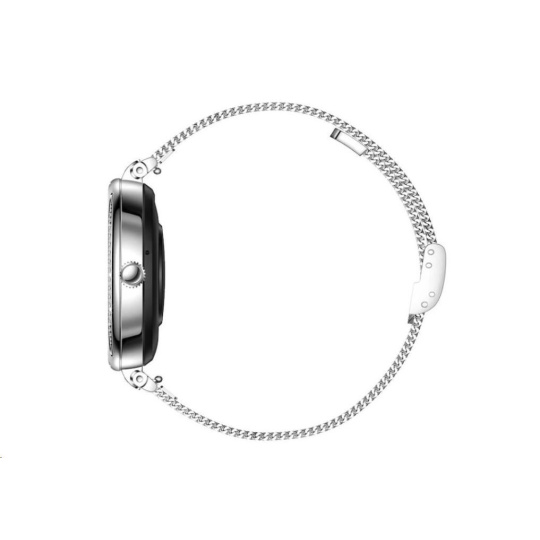 Luxusné dámske fitness hodinky CARNEO Seinna HR+ strieborné sú skutočným šperkom na ruke každej ženy. Kovové telo osadené brúsenými kameňmi pritiahne pohľady všetkých. S farebným SUPER AMOLED displejom monitorujú vašu dennú aktivitu a je možné ich spárovať s mobilným telefónom, vďaka čomu môžete vybaviť telefónny hovor priamo zo zápästia, alebo vás upozorní na prichádzajúci hovor, SMS alebo správu z aplikácií.