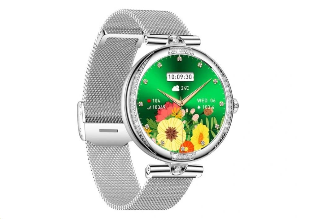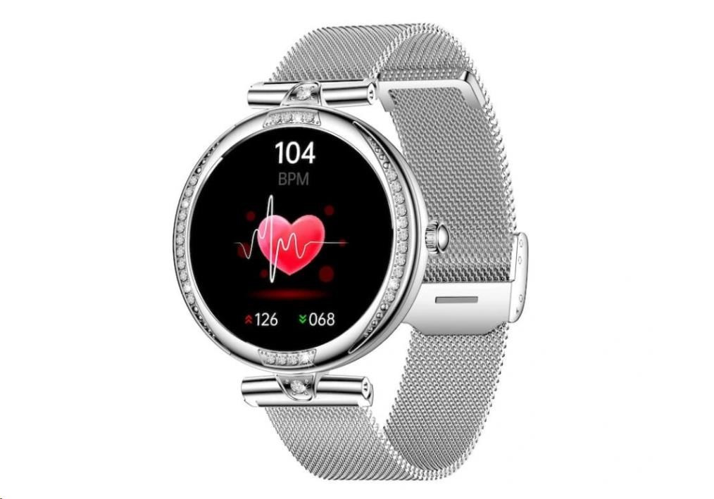 Luxusné dámske fitness hodinky CARNEO Seinna HR+ strieborné sú skutočným šperkom na ruke každej ženy. Kovové telo osadené brúsenými kameňmi pritiahne pohľady všetkých. S farebným SUPER AMOLED displejom monitorujú vašu dennú aktivitu a je možné ich spárovať s mobilným telefónom, vďaka čomu môžete vybaviť telefónny hovor priamo zo zápästia, alebo vás upozorní na prichádzajúci hovor, SMS alebo správu z aplikácií.