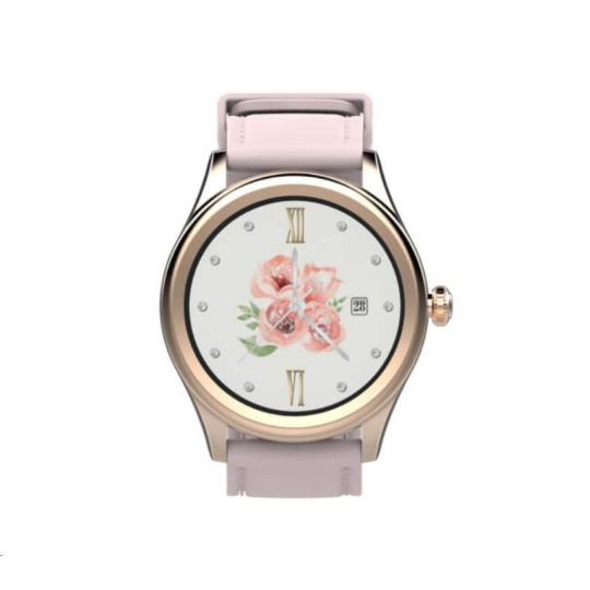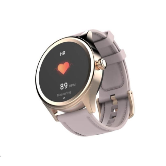 Smart hodinky Carneo Prime GTR v elegantnom zlatom prevedení, farebným dotykovým displejom je možné aktivovať jednoduchým otočením ruky. Okrem bežných "smart" funkcií disponujú aj fitness športovými funkciami a to všetko v elegantnom business look prevedení. Rosegold silikónový remienok v dizajne koženého páska s prešívaním umocňuje ich eleganciu.