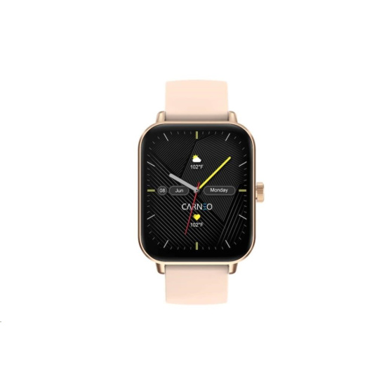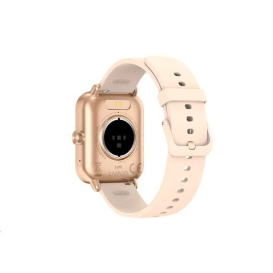 Moderné fitness hodinky Carneo Versa HR+ v elegantnom ružovozlatom prevedení sú vybavené farebným displejom IPS, ktorý možno aktivovať len otočením zápästia. Merajú telesnú teplotu, krvný tlak, okysličenie krvi, srdcový tep, prejdenú vzdialenosť, monitorujú spálené kalórie a kvalitu spánku. Súčasťou je batéria s výdržou cca 3-5 dní. Podľa certifikácie IP67 sú odolné voči vode a prachu. Hodinky s podporou technológie Bluetooth sú kompatibilné s operačnými systémami iOS a Android. Silikónový remienok s kovovou sponou je príjemný na dotyk a zaručuje komfort počas celého dňa.